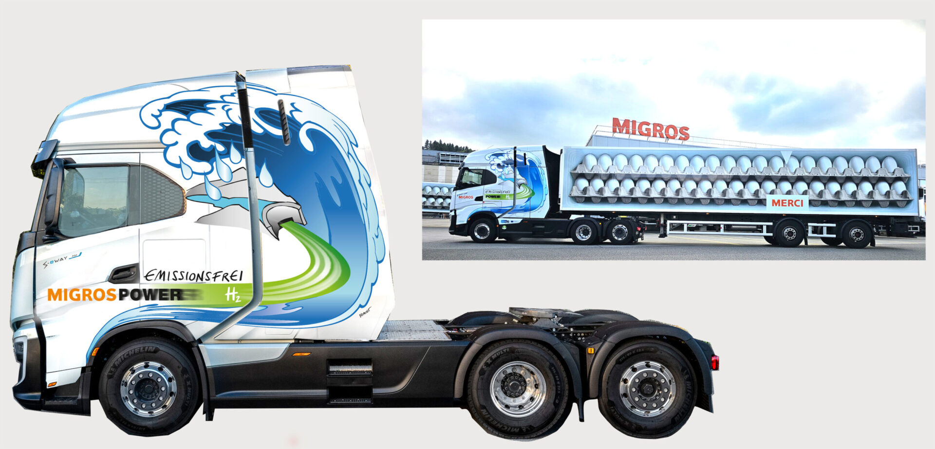 Migros Gestaltung Führerkabine IVECO, Wasserstoffantrieb